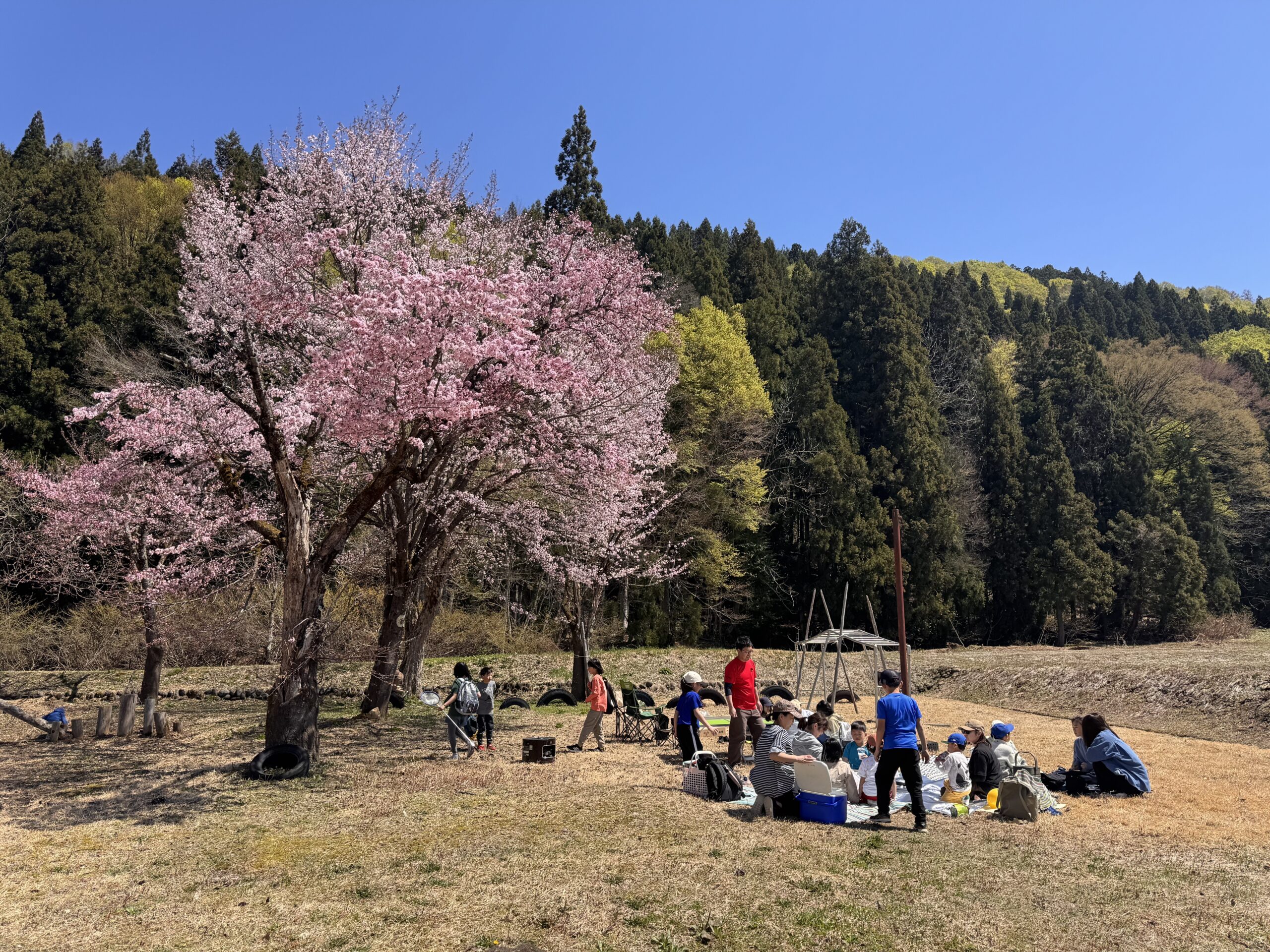 イベント「桜ウォーク」で津南町内を巡られていた皆様です。当センターへ立ち寄られ、グラウンドの満開の桜の下でお花見を楽しまれました。