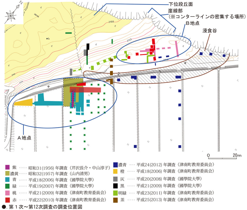 本ノ木遺跡は、第1・2次発掘調査が実施された水田部分を「A地点」と呼び、水田西側に位置し、段丘端にあたる杉林を「B地点」と呼んで区分した。「B地点」からは、上層から押型文土器などが出土したが、下層から押圧縄文土器がまとまって出土した。その様相... -