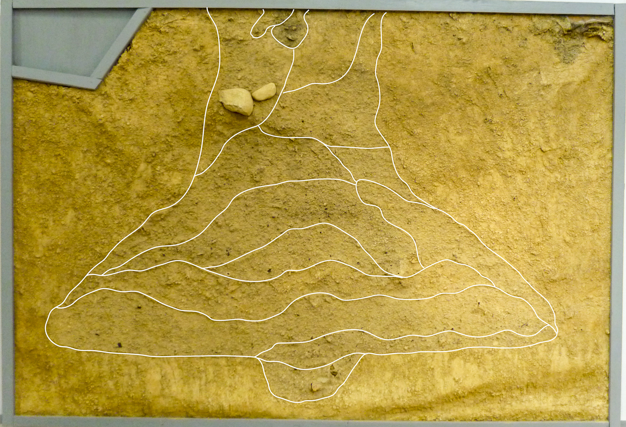 ここでは堂平遺跡M12‐P27の記号を付したフラスコ状土坑の堆積土層を保存した。