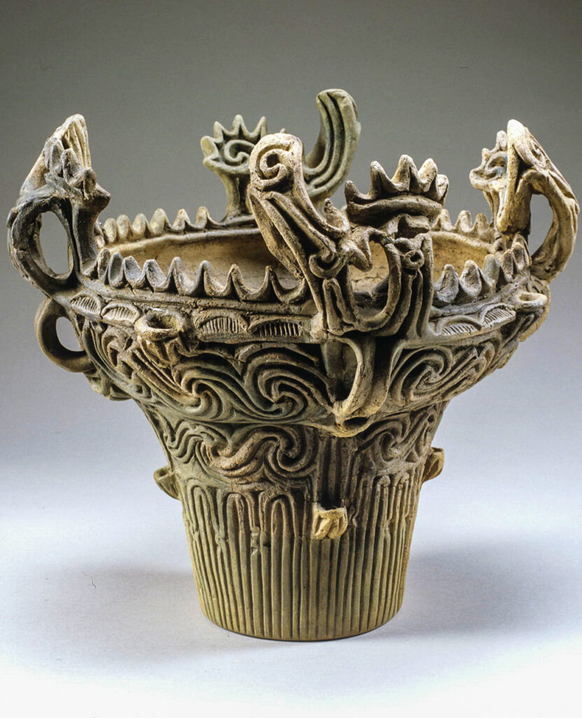 縄文時代中期という時間は、5,500~4,500年の約1,000年間である。中期を代表するのが火焔型土器である。この火焔型土器や王冠型土器を構成する馬高式土器は、その前段階にある「五丁歩式土器」を祖形として発展・形成したと考えらえる。