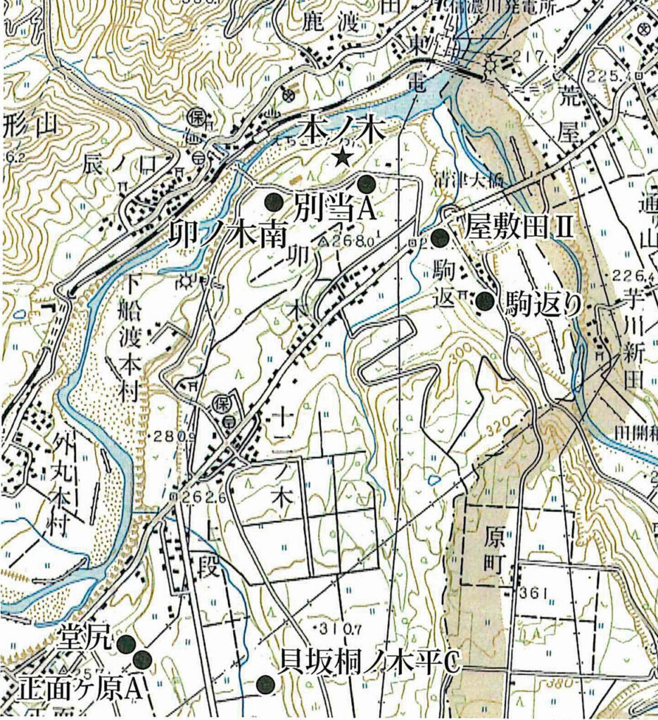 現在は、黒色頁岩の産地が三国山界隈の新潟側と群馬側にあることが知られている。石材産地と所費地を結ぶ領域に「中継製作遺跡」があり、その一つが本ノ木遺跡であろうと小菅将夫は推察している。