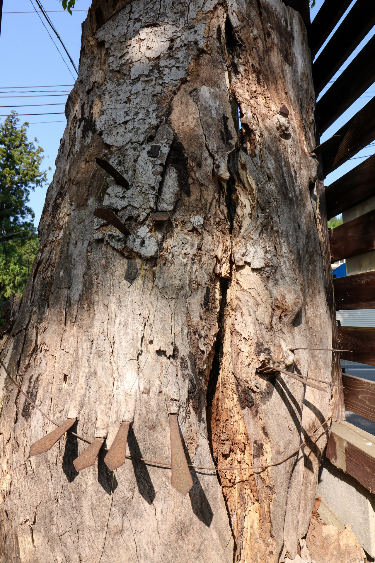 このほか、清津川沿いに事例があったとされ、清津峡の西の尾根には、ご神木が朽ち、現在山の神の石造物が祀られているが、脇には、かつて、ご神木に刺してあったケンギがまとめて置かれている。清津川沿いにはこのほか2ヶ所、このようなご神木があったそうであるが、道路や鉄塔建設や倒木により残っていないそうである。