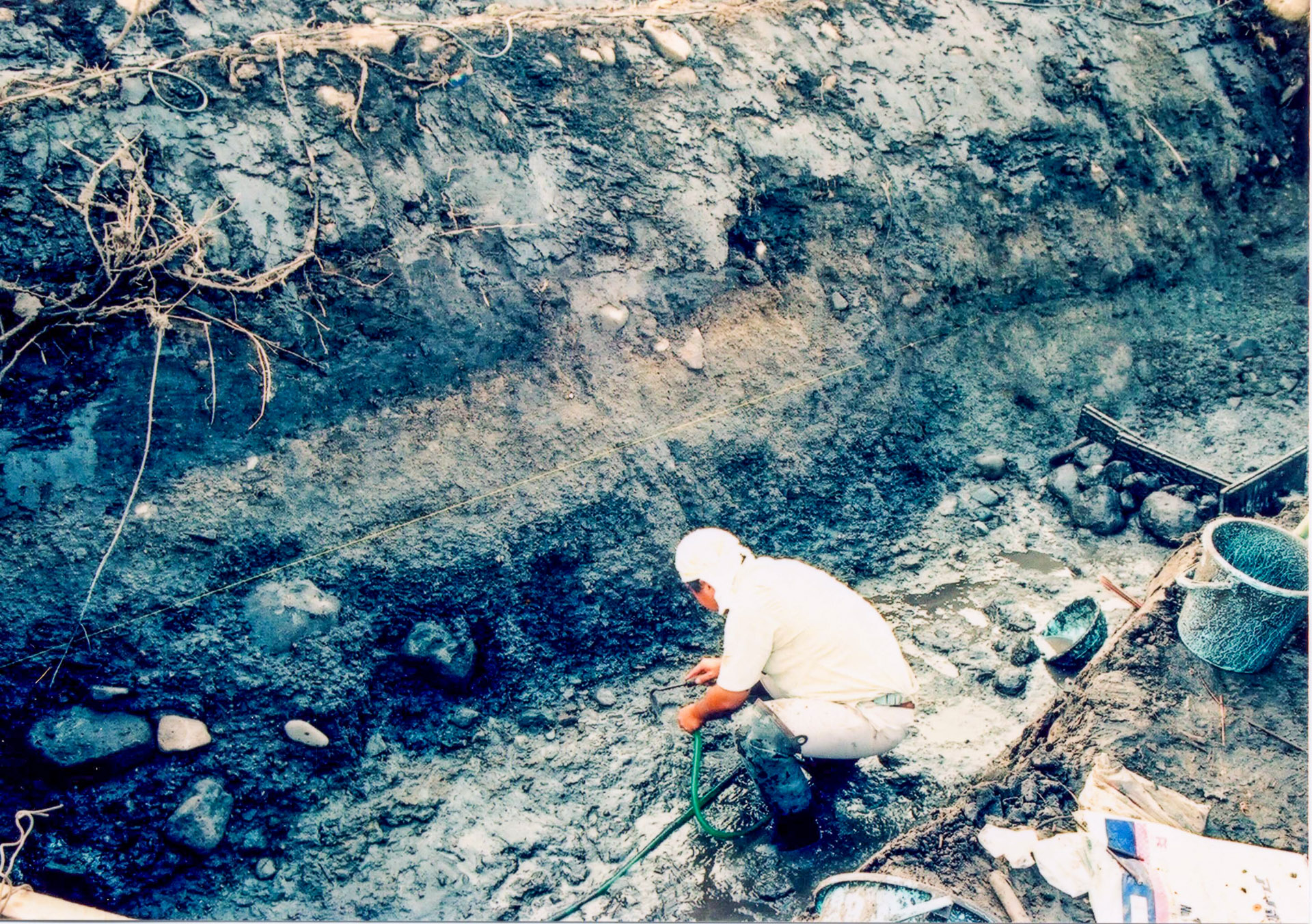 この小川が流れる沢地形から大量なトチノキの実(内皮)が大量に堆積していたことから、トチノキの実を対象とした渋晒(しぶさらし)作業が行われていたと考えられる。