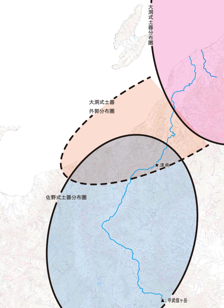 大洞式土器文化の南端に位置する蒲原平野と信濃川で繋がる苗場山麓では、正面ヶ原A遺跡出土の土器相からの把握、大洞式土器文化圏の中に苗場山麓は無く、信州の佐野式土器文化圏の北端部に位置すると考えられる。さらに粗製土器の土器相から判断するならば、佐野式土器文化圏の中において、北端という地理的環境から大洞式土器文化圏南端部と佐野式土器中心部から影響を受けており、両者の要素を含んだ在地土器相を形成している。そのような環境を踏まえて、出土遺物から「モノの動き」を推察したい。