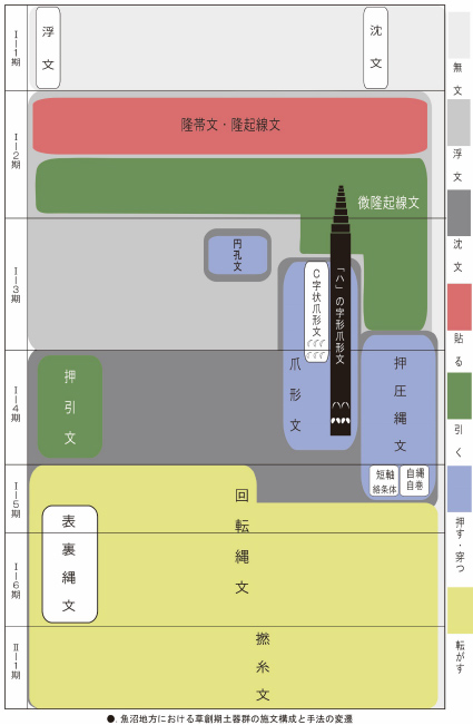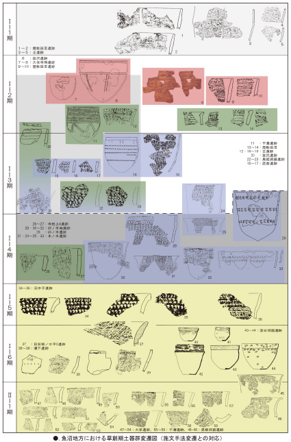 苗場山麓では、本ノ木式土器を定点に、それよりも古相の土器群と新相の土器群を把握して編年学的に配置し、それに伴う石器群を含めた総合的な草創期社会へのアプローチ研究の扉に手が届いた所である。今後の研究に期待したい。