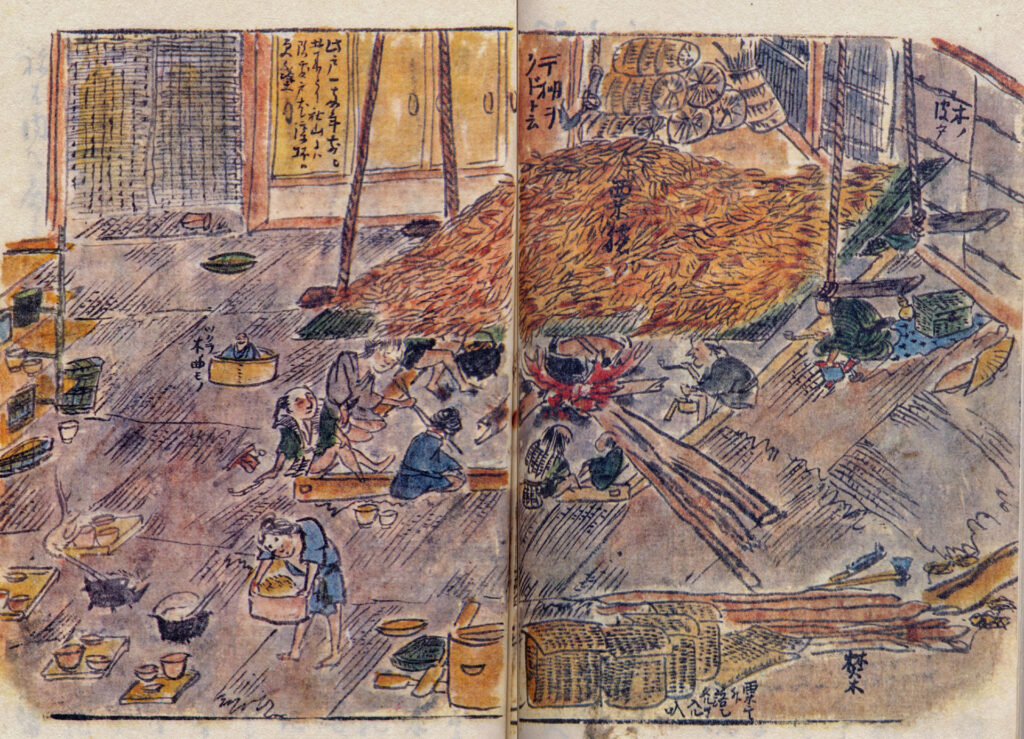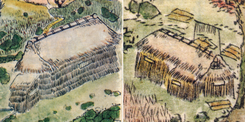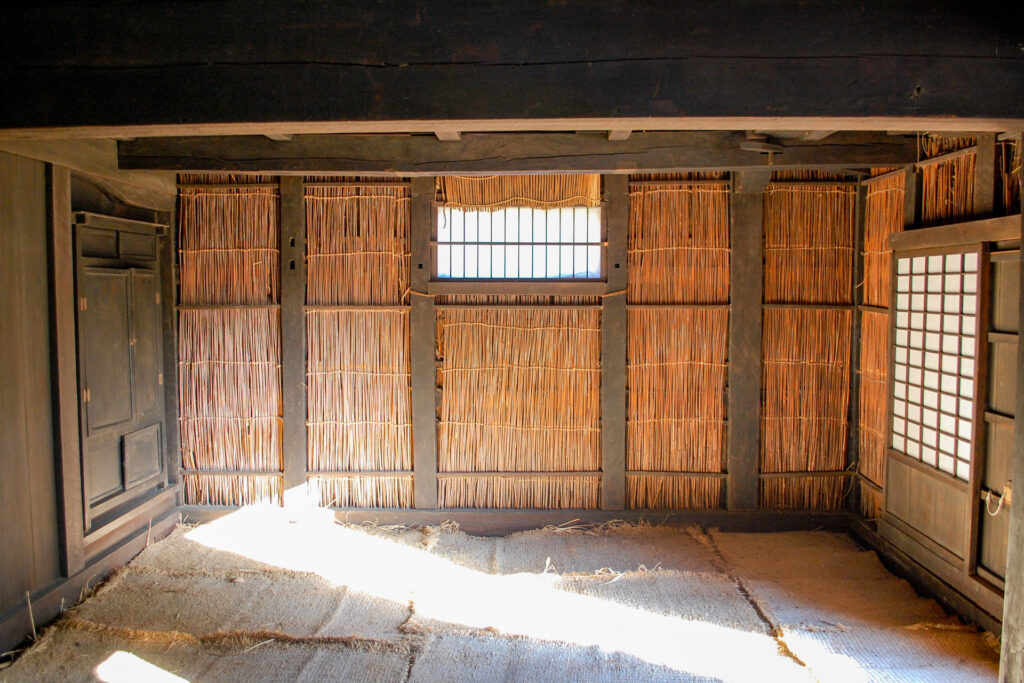 『秋山記行』に描かれた建物は、茅葺き屋根で、壁も茅が葺かれている様子が描かれている。