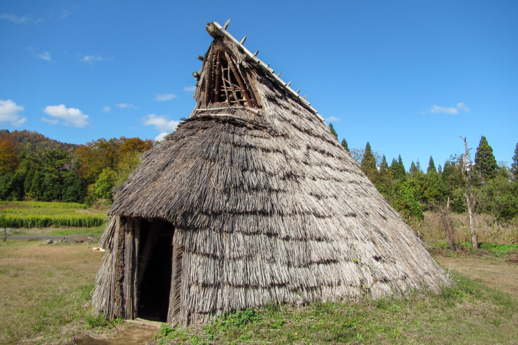 土器を発明し、定住的な生活が始まった縄文時代、竪穴住居が作られる。中央に炉を配し、柱は沖ノ原遺跡の事例ではクリ、ブナ、ナラの木などが利用されていたことが明らかとなっている。上屋構造は不明であるが茅葺や土葺きであったと考えられる。