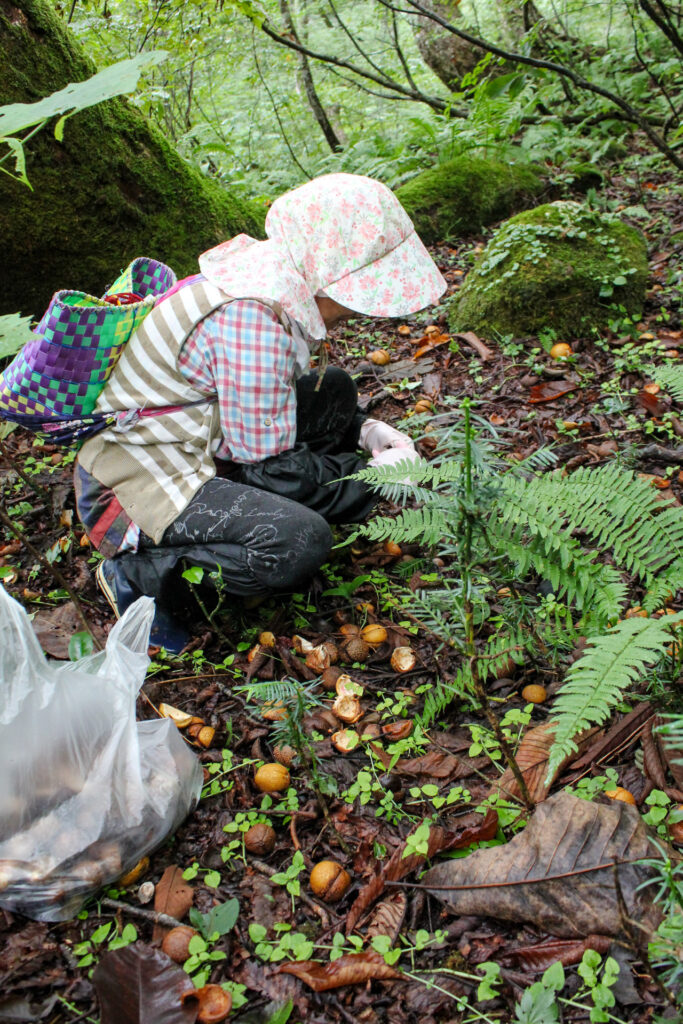 また、津南町見倉集落の東側斜面地に広大なトチ林がある。純林に近い状態で残されている。まさしく縄文の森である。おそらく、近世において管理下にあったトチ林であると推定される。山のクチが開けた9月の土用以降に山人がこぞって採集する様子が現在も見ることができる。