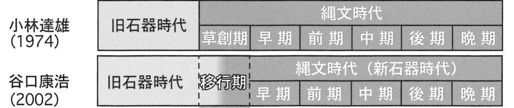 このように、後期旧石器時代から縄文時代草創期前半に掛けて、緩やかに土器使用が開始され、細石刃石器群が消滅することが理解できる。人類の文化変遷を学ぶ考古学における時代区分は、重要な考え方の基本をつくる。